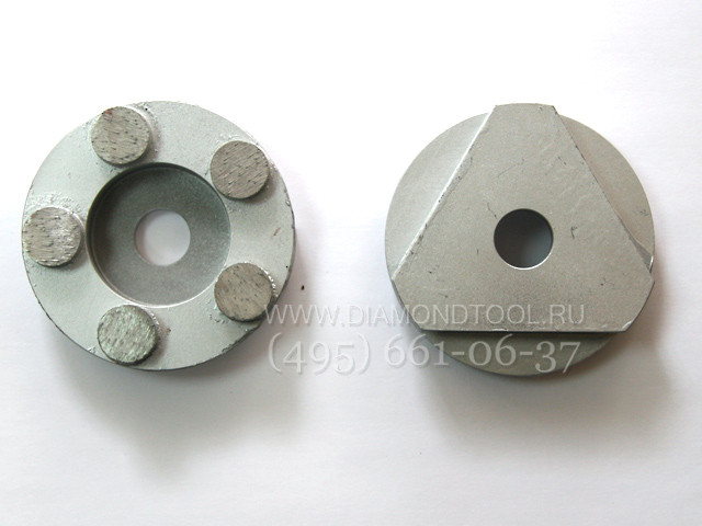 Цельнометаллическая конструкция - фреза и треугольное крепление для гарантированной установки на траверсы мозаично-шлифовальных машин СО. К тому же, это избавляет от потребности в постоянной подборке и монтаже подходящих креплений.