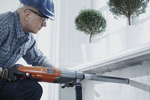 Возможно сверление в ручную отверстий диаметром до 80 мм.