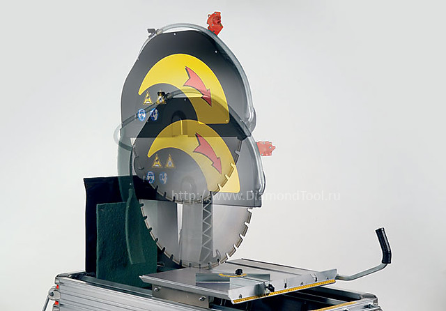• Конструкция станка позволяет пилить блоки высотой 220 мм