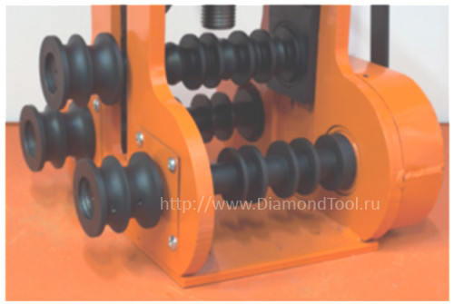 - В стандартной комплектации 3 комплекта сменных роликов (2 комплекта роликов – под круглую трубу, каждый комплект из трёх роликов – имеет 2 профиля под круглую трубу. А так же один комплект роликов под профильную трубу.