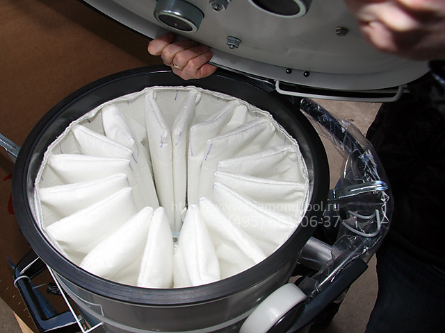 Высокая эффективность фильтрации, детектор уровня загрязнения фильтра, встроенная система очистки фильтра. Стальной корпус. Возможность убирать пыль, твердые отходы, жидкости одновременно. Съемный бак для мусора с возможностью использования одноразовых пакетов для мусора. Очень низкий уровень шума.