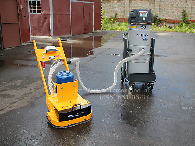 Работа фрезеровальной и шлифовальной машины по бетону с промышленным пылесосом S3