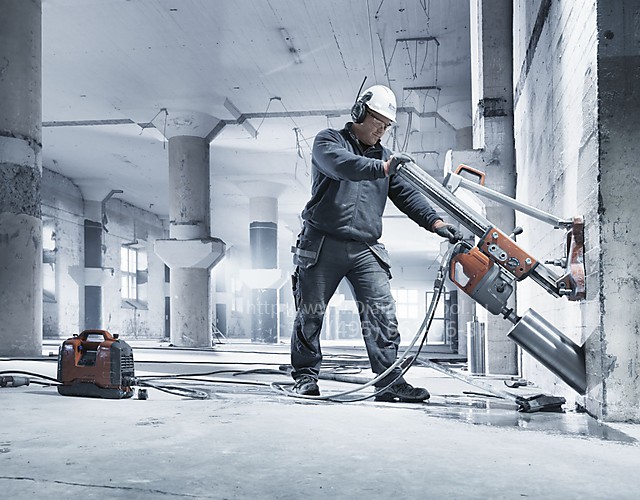 - Сверлильный мотор рекомендуется использовать со сверлильной стойкой Husqvarna DS 450, при выполнении бурения на железобетоне, кирпиче и других материалах.